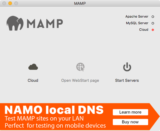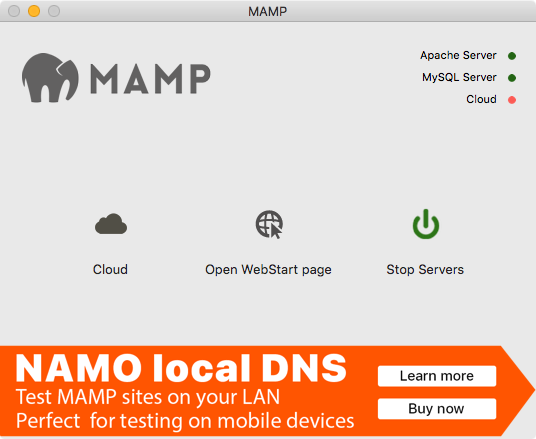 「Start Servers」をクリックし、ApacheとMySQLを起動する。