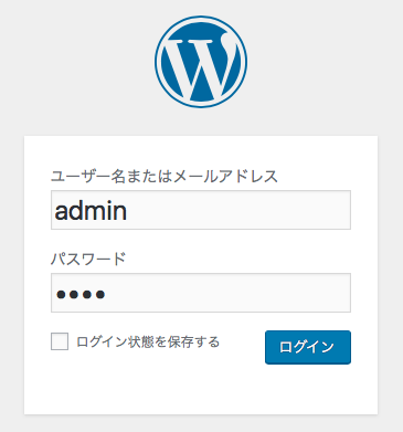 設定したユーザー名とパスワードを入力し、「ログイン」ボタンをクリック。