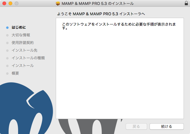 ダウンロードした「MAMP_MAMP_PRO_5.3.pkg」をクリック。